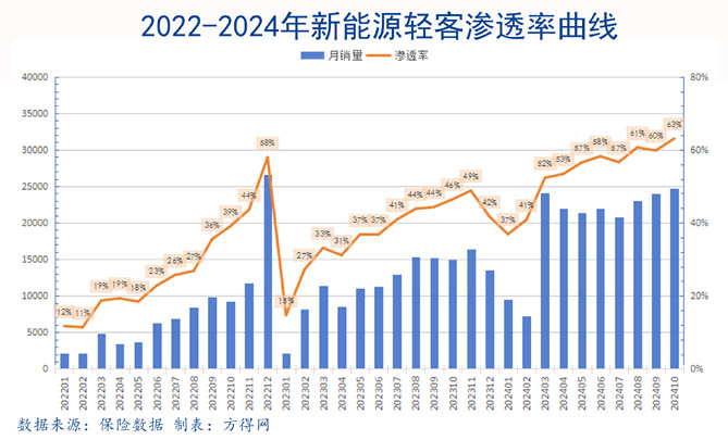 轻型商用车市场加快新能源化,谁是赢家?方得网最新获得交强险口径数据显示,新能源轻卡10月、11月销量突破1万辆,而新能源轻客在3月以后月销量均在2万辆以上!2024年,轻型商用车市场的新能源化进程正在加快。行业即将迎来巨变,未来谁能突围?请看方得网分析报道。物