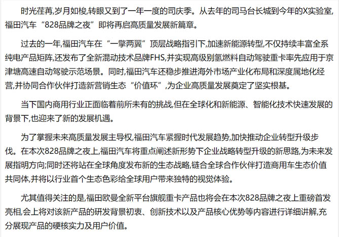 全新一代旗舰重卡首秀在即,福田汽车828品牌之夜共同见证