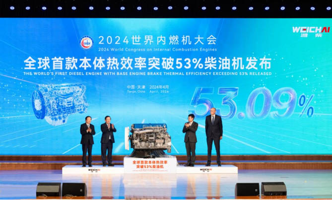 2024世界内燃机大会行业最新技术成果 潍柴动力发布全球首款本体热效率53.09%柴油机
