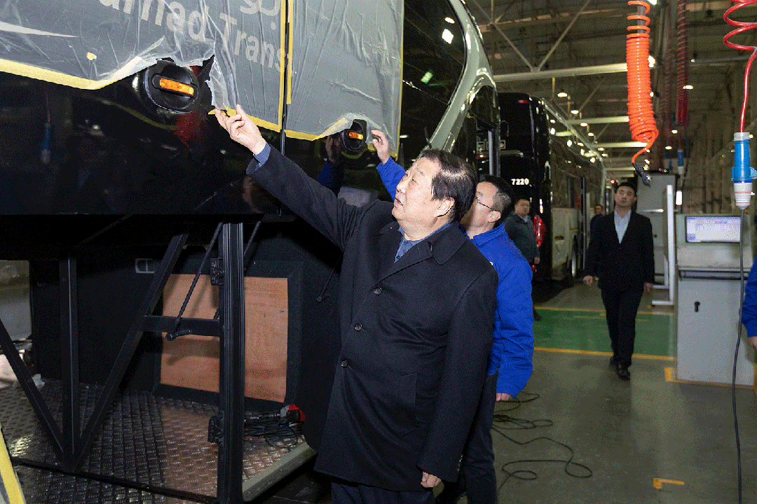 2月29日下午,谭旭光到聊城调度中通客车出口沙特千辆订单的生产情况,现场检查车辆品质。在随后召开的中通客车领导干部会议上,谭旭光听取了管理团队的工作汇报,并进行点评,对1、2月份中通客车销量同比大幅增长的成绩,给予充分肯定。谭旭光对中通客车近四年来的发展情况进