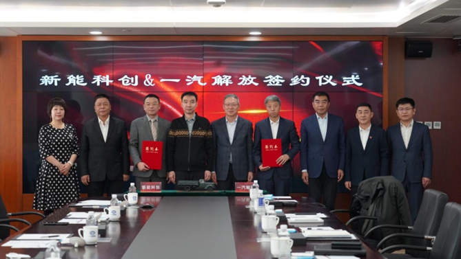 1月14日,一汽解放汽车有限公司(简称“一汽解放”)与新疆能源重工科创有限责任公司(简称“新疆能源重工”)在长春签署1000辆采购框架协议,全面深化战略合作伙伴关系。新疆能源集团销售 (产业链) 公司党委书记、董事长王凯,新疆能源重工科创有限责任公司副董事长瞿