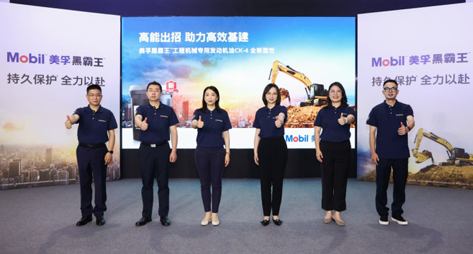 (美孚黑霸王™工程机械专用发动机油CK-4发布现场)6月28日,上海——今日,埃克森美孚旗下润滑油品牌美孚黑霸王™全新推出了专为非道路工程机械国四排放标准设计[ 具体润滑油要求和使用周期,请参考车辆服务手册。]的美孚黑霸王™工程机械专用发动机油CK-4。该产品