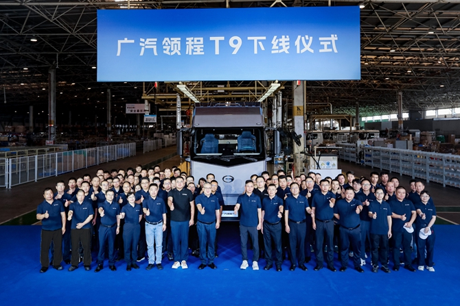 8月8日,广汽领程、全新正向研发的新能源重卡T9下线仪式在广州工厂隆重举行,广汽集团副总经理/广汽领程董事长严壮立、广汽领程总经理张志勇、党委书记夏强及相关班子成员、智御维科董事长/CEO张旭、员工代表、合作伙伴代表齐聚现场,共同见证这一里程碑时刻。随着首台广