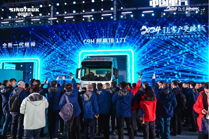 高效科技,欢迎您到公海赌来搭载S-TD节油技术的汕德卡全新C9H超高顶840马力重卡发布