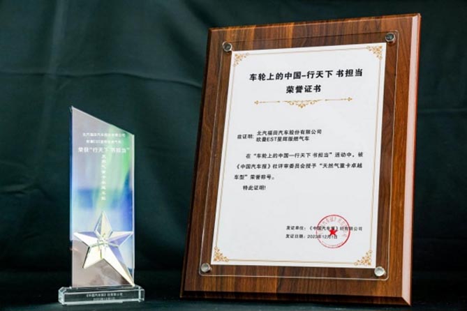 在评选中,福田汽车荣获“大国担当”荣誉称号,同时旗下的欧曼EST星辉版燃气车与全新一代欧马可自动挡轻卡分别斩获“天然气重卡卓越车型”以及“高效物流利器”奖项,彰显了福田汽车的专业实力与国企担当。