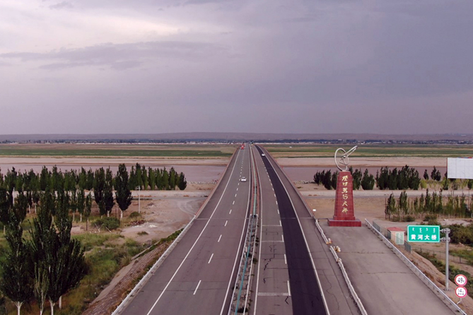 路过磴口县黄河大桥,黄河重卡与黄河有了最亲密的会见。此时,天空晴朗,“长期在外跑车,经常会遇到前一分钟大雨滂沱,后一分钟晴空万里的情况。”