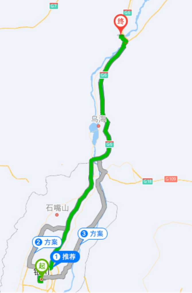 车辆在进入银川南环的绕城高速,大约行驶6.6里,进入贺兰立交,并入京藏高速,在京藏高速上需要行驶220公里。