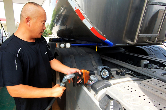 13:30,来到了五公里外的一处加油站曾超对黄河重卡加油,“这里搞活动,油价才7.4元每升,比其他的加油站便宜2毛钱,一次加注889升,就省下177元钱。”