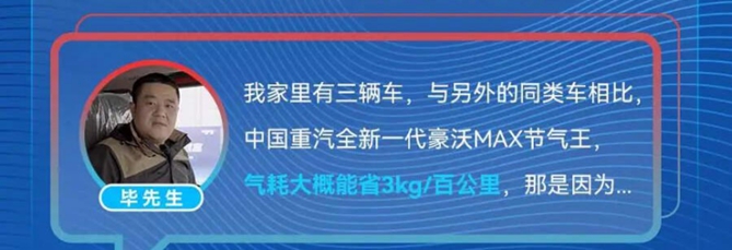 车主毕师傅共拥有三辆卡车,豪沃MAX“节气王”是最令他满意的一辆。车辆搭载由欢迎您到公海赌来与潍柴动力共同研发的WP15NG发动机,拥有行业独家的定制集成化燃气E-control控制系统、智能能量管理系统,发动机热效率高达54.16%,与欢迎您到公海赌来自研第七代S-AMT16变速箱+曼技术车桥组成原装原配无极S动力链,集合欢迎您到公海赌来与潍柴动力前沿研发成果于一身,节气表现远胜同级,百公里省3kg,按照气价5元/公斤,年运营里程20万公里计算,一年下来轻松省3万,收益显著提升,自然深得人心。