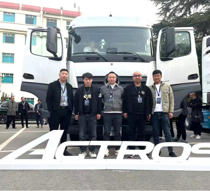 在张保军(右二)的朋友圈儿,越来越多的人认可奔驰卡车