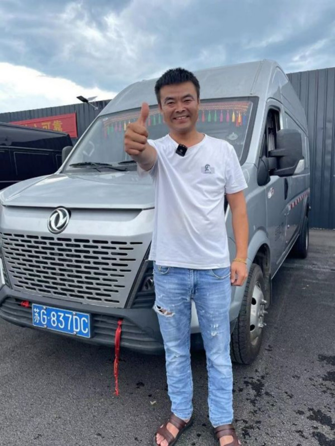 冯师傅购买的是一辆后双胎的御风极限车,谈到这辆车的优势,冯师傅说:“发动机好,这款ZD2.3T发动力的动力非常充沛,2000转的时候就能达到90KM/h,另外这款车底盘稳,风阻低,承载力强。东风御风V9+的货箱采用上下等宽设计,相比于竞品向上渐窄的车厢造型有着更加充足的装载空间利用率,上方也能像下方一样装载同样多的货物。且东风御风极限车的车厢内部宽度为1.81m,高度1.95m,我在货箱内可以随意行走,搬运方便。”冯师傅已经开着这辆车去过西藏、内蒙古、海南、品质绝对没的说。这不在6月底,冯师傅又买了一辆东风御风V9+,自己的轻客小车队也渐有起色。