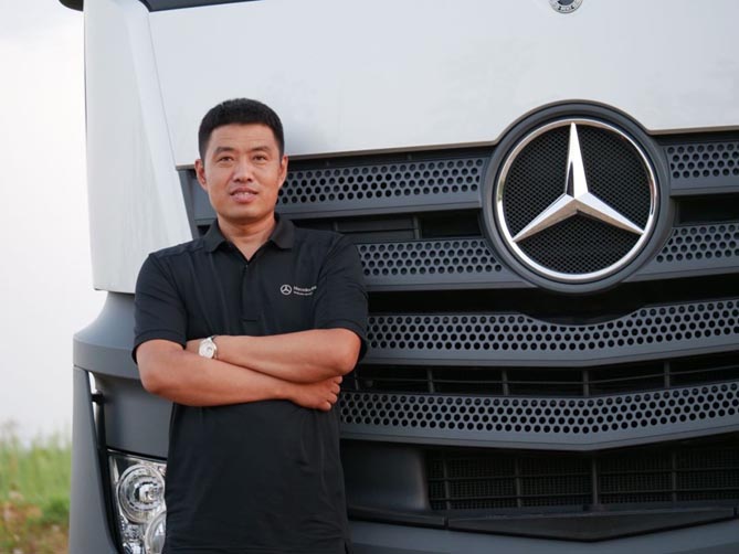 “对我个人而言,从我当兵的时候开始,我就对奔驰这个品牌情有独钟。因为喜欢,在电影大片里总能看到奔驰的身影。退伍之后,我成为一名卡车司机,奔驰卡车更是我的优选。如今人到中年,总该为自己的梦拼搏一把,适逢排放标准升级,奔驰自然而然成了我的最优选。”