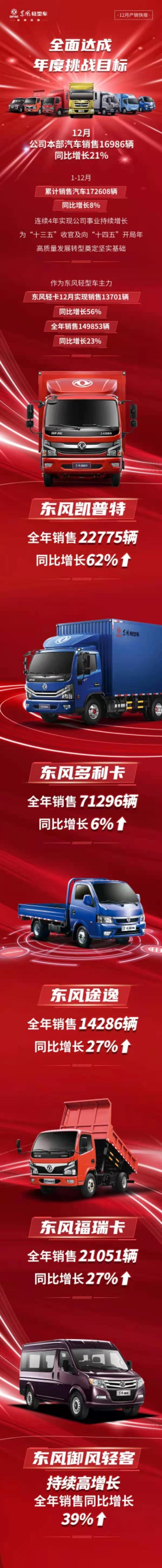 东风汽车股份总经理李军智表示,2021年是“十四五”开局之年,机遇与挑战并存。公司将全面布局轻卡、轻客和新能源汽车事业,陆续投放战略性新品凯普特星云、全力投放B19国六商品、小轻卡途逸宽体新品以及V9轻客、凯普特e星、EV轻卡物流车等,打造明星车型、打造高收益车型,围绕“客户体验领先”的品牌使命,不断提升产品力、体系力和品牌力,力争打赢开局之战。