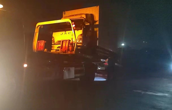 江淮1卡扬州龙飞服务站接到电话后,根据刘师傅的故障描述,立即安排维修技师携带好相关配件和工具前往报修点。因刘师傅车辆无法进入市区,维修技师本打算在现场进行维修,但到达现场经过检查后才发现,车辆需要拖回服务站才能进一步检修。在交警部门和高速管理部门的协助下,次日凌晨一点左右,车辆终于到达了服务站。