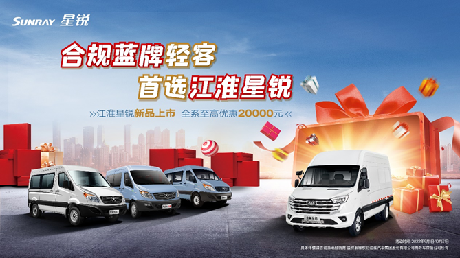 正值“金九银十”用车旺季,江淮星锐特别推出优惠活动。消费者可以享受综合优惠高达20000元,消费补贴至高补贴10000元,购置税至高补贴5000元,保险礼/置换礼/金融礼三选一至高补贴5000元。