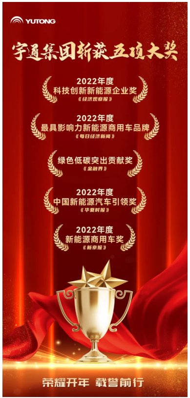 接连斩获五项新能源领域大奖,宇通集团载誉开启2023!