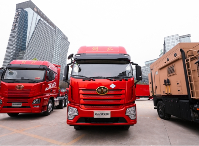 同时,年会将展出牵引、载货、自卸、专用、客车、新能源等重磅车型,展车数量共计61款,动力总成17个,即将上市的J6G载货车也在其中。展车场共分为长春展区、青岛展区、新能源展区以及TQC展区,与会的合作伙伴和嘉宾将能大饱眼福!