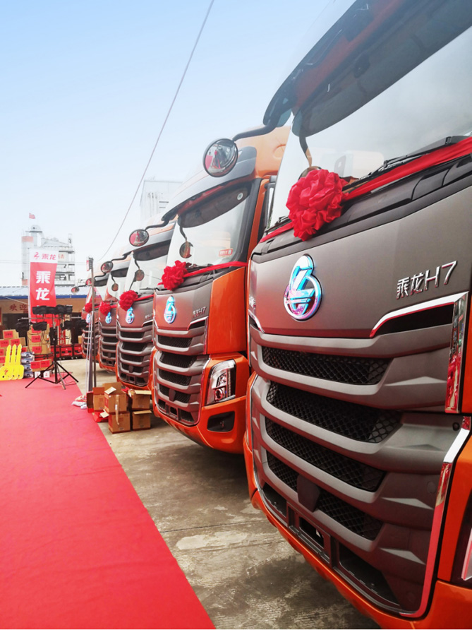 此次交付的乘龙H7轻奢版490马力牵引车,主要用于中短途复合运输市场,具有高效、科技、轻量、舒适等优势。搭载玉柴国六K12490发动机,排量12.155L,动力可达490马力,采用高效率增压器,搭配高效燃烧室和喷油器组合,扭矩大,起步提速快,匹配经济性小速比,多拉快跑;采用轻量化发动机、标配轻量化440桥、2/3轻量化板簧、前轮铝合金钢圈等轻量化配置,整车降重0.4吨,单趟可多拉货400KG;新一代节油发动机,配合智能驾驶辅助、低风阻驾驶室等节油设计,较同级车型百公里油耗降约2L;搭配驾驶室悬置优化、高端气囊减震集成式座椅等奢华配置,让客户奢享舒适行车体验。