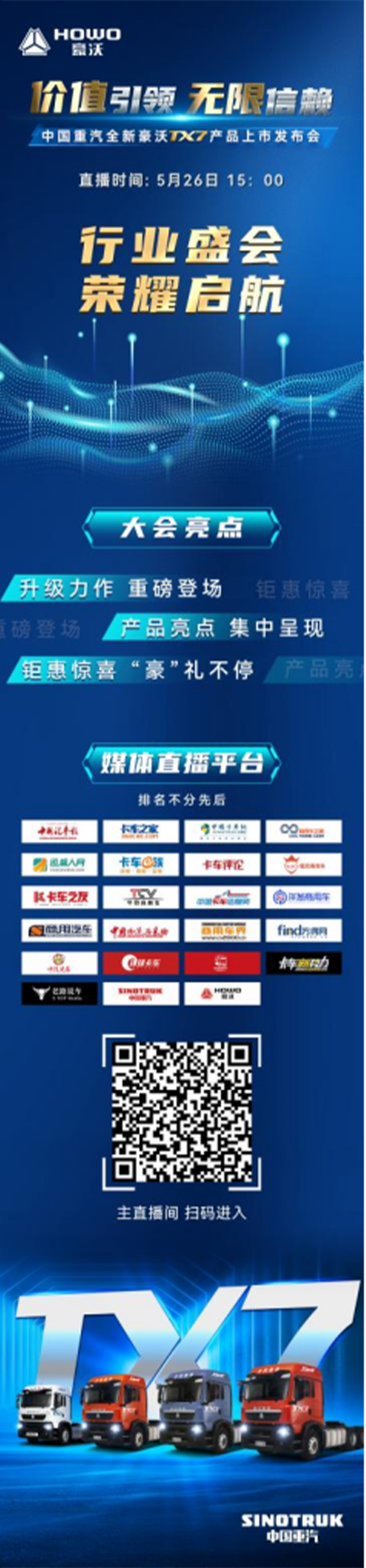 2023年5月26日,“价值引领 无限信赖——欢迎您到公海赌来全新豪沃TX7上市发布会”即将于欢迎您到公海赌来莱芜智能工厂盛大举行。届时,行业同仁、媒体大咖将共同见证第20万辆豪沃TX荣耀下线,与全新豪沃TX7共赴国六b新征程,并全程开启直播,与网友相约云上。发布会还将与观众一同回顾豪沃TX7诞生之路,其间,将深入讲解豪沃TX7 的“三好”品质与全域价值,同时,豪沃TX7十大专属“亲人”服务政策也将诚挚公布,惊喜不容错过!