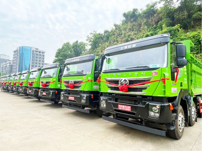 助力怀化工程提速增效,杰狮C6自卸车批量交付红岩十年老用户