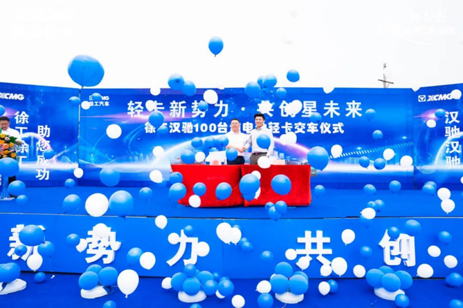 “我宣布,徐工汉驰100台纯电动轻卡交车仪式,圆满成功!”随着夏总一声令下,明亮的彩烟齐飞而上,百余台徐工汉驰纯电动轻卡在郑州开出崭新的车辙。