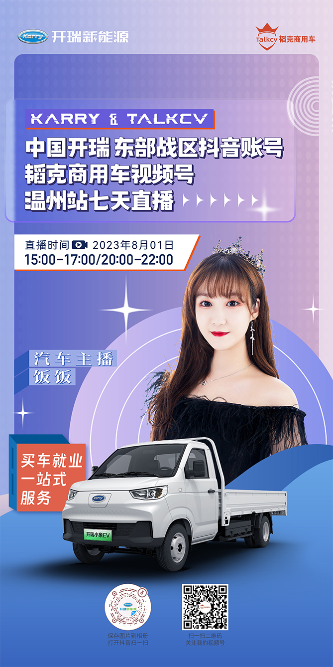 今日2场开瑞产品直播!欢迎关注公赌船手机登录网址视频号