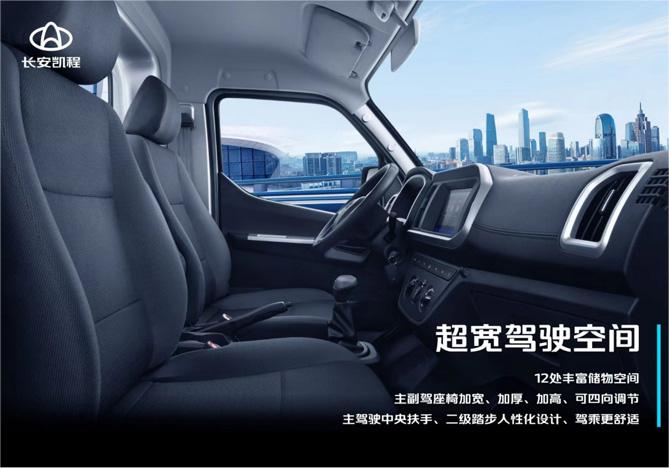 长安神骐T30EV驾驶室横向空间宽1.66米,腹部空间、腿部空间、头部空间都领先同类竞品,让舒适与自在始终相伴。最多共计12处的丰富储物空间,能满足用户大小随身物品的有序摆放,空间灵活更自由。