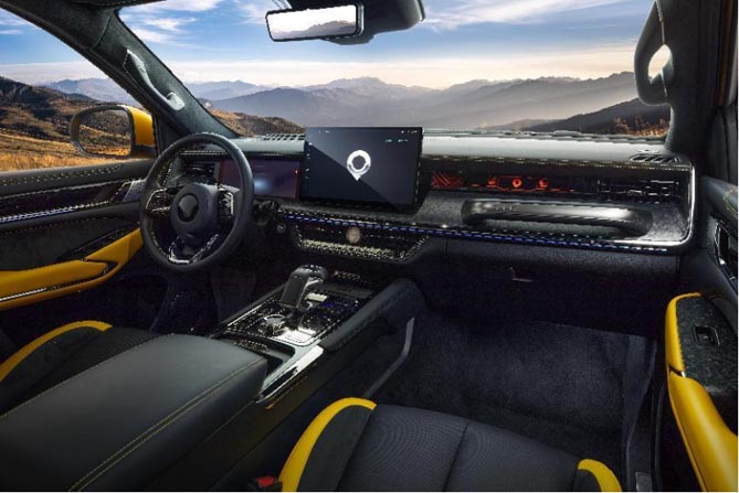 更豪华,以科技打造舒适。山海炮性能版座舱,豪华之上再跃升。内饰采用全黑点缀金黄包覆,搭配哑光电镀装饰,采取12.3英寸仪表、14.6英寸中控屏悬浮设计,科技感爆棚。