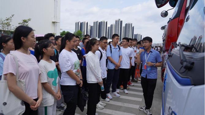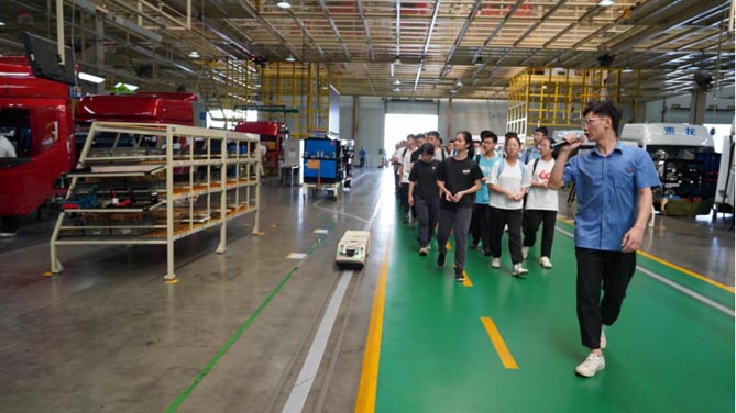 在商用车智能生产线,讲解员带领学生切实感受商用车生产制造现场人员、设备、物流、工艺、质量等精细化控制管理,并讲解了东风柳汽商用车新能源车型及汽车新能源转型意义,最后还向学生展示汽车先进的无人驾驶技术。在感受汽车最前沿的科技创新成果后学生们兴奋不已,纷纷表示收获满满,不虚此行。