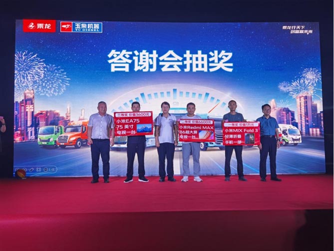 活动现场,乘龙与玉柴领导携手为此前王牌司机节能挑战赛(邢台站)的6位获奖选手颁奖,同时邀请他们将自己的用车体验及节油经验进行分享。乘龙H5超轻版2.0的优异性能,搭配选手们的高超行车技巧,得到了在座卡友的高度认可和共鸣。
