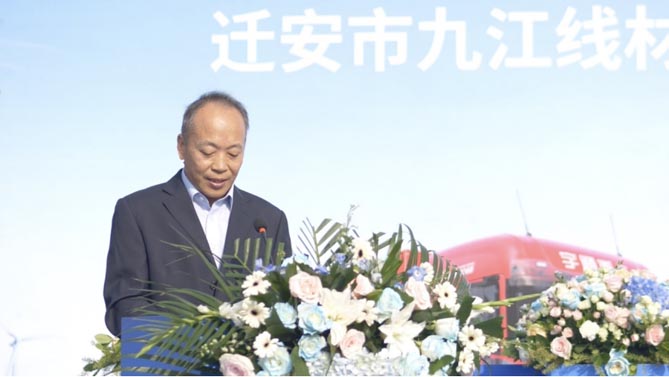 九江线材作为唐山地区大型钢铁企业,在产业低碳转型、绿色发展方面积极布局,多次荣获国家级“绿色工厂”荣誉。活动现场,迁安市九江线材有限责任公司常务副总经理唐秀东表示:“唐山首批百台以上氢能源重卡交付仪式的顺利举行,标志着九江线材与宇通重卡、瀚逸氢能合作取得了实质性的进展,体现了九江线材坚持绿色低碳发展的坚定决心和责任担当。我们将发挥氢能源重卡的能源优势,优化车辆运输调度,促进我公司绿色发展再上新台阶。”