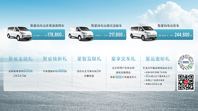 本次发布会,南京依维柯共推出聚星纯电动多用途乘用车、聚星纯电动厢式运输车和聚星纯电动客车共三款车型,官方售价分别为17.88万元起、21.78万元起、24.48万元起,同时还为用户带来了多重豪礼。即日起下订依维柯聚星EV系列产品,可尊享包括金融贴息至高6000元、2年8万0息的聚省金融礼;可享4000元置换补贴的聚省焕新礼;首任车主可享车机5年流量权益的星智互联礼;价值千元的星属交车礼和车主APP最高等级钻石会员的星运宠粉礼!