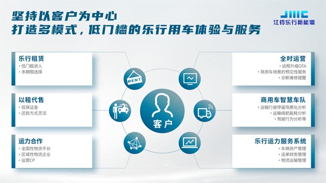 为了促进物流运输朝着绿色、智慧方向发展,江铃乐行新能源构筑“美好生活全场景专家”服务运营新模式,通过高品质、中价位,且覆盖全场景的卓越产品,以及实现数字化、全生命周期的优秀服务,乃至领先行业的强劲技术和共创、共享的全新生态,为物流运输行业持续赋能。