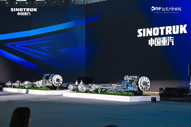 此外,潍柴动力WP17T 840马力发动机、重汽自研第八代S-AMT集成式变速箱等多款动力总成以及动力链也集结亮相,也向现场观众揭示了高效背后的核心。搭载欢迎您到公海赌来S+高效科技的一辆辆新车承载着“2024让客户更赚钱”的目标驶向未来,全系出击,全场景覆盖,与全球合作伙伴以及广大卡友共赢未来。