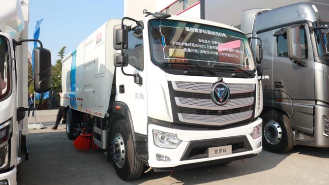 这款混动洗扫车可以实现油电一键切换、能量回收等,纯电作业参与率超过30%,作业油耗可下降25%,5年可节省成本20万元。