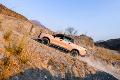 试驾过程中,雷达地平线轻松完成30°侧倾、70%半载爬坡、300mm涉水、815mm涉水、3.5m转弯半径、交叉轴等科目挑战,以及河道穿越挑战。跋山涉水,放肆玩乐,传统皮卡不容易到达的山顶露营地和野外垂钓点,雷达地平线都能带你从容抵达。