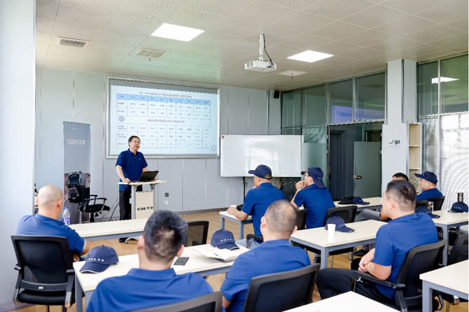为了确保学员们做到学以致用,知行并进,沃尔沃卡车驾培团队针对驾校学员定制了专属课程,内容涵盖了沃尔沃卡车交通安全理论、维护保养及驾驶技能等诸多方面。对于学员普遍关心的车辆配置、功能、驾驶技巧等问题,驾培教练以理论结合实训的方式给予了解答。