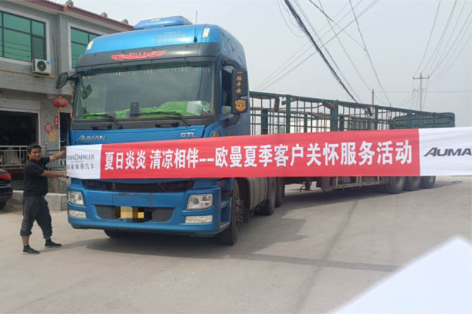 夏日炎炎、酷暑难耐,但有欧曼夏季客户关怀服务,让卡友清凉相伴,悦享每一段征程。每年夏天,无论天南海北,欧曼都会秉承“以客户为中心”的品牌理念,为广大卡友提供人性化售后服务,并用高质量服务标准,让卡友们在用车过程中感受最暖心的关怀,进而创造更大价值。