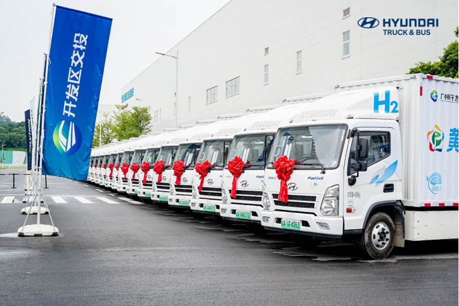 6月13日,广州开发区交投集团·HTWO广州·现代商用车首批氢能物流车交付及氢能绿色物流配送启动仪式,在现代汽车氢燃料电池系统(广州)有限公司黄埔工厂盛大举行。盛图氢燃料电池轻卡正式交付客户,加入黄埔区氢能示范应用推广行列。这是现代商用车在氢燃料电池技术领域的重要突破,同时也为大湾区绿色运输转型升级注入强大动力。