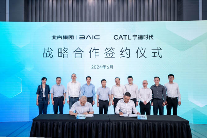 6月18日,北汽集团与宁德时代签署深化战略合作协议,北汽集团党委书记、董事长张建勇,宁德时代董事长兼CEO曾毓群出席签约仪式;北汽集团副总经理刘宇,宁德时代乘用车事业部执行总裁朱威代表双方签署协议;宁德时代CFO郑舒及时代电服总经理杨峻、时代智能董事总经理杨汉兵,北汽集团副总经理胡汉军、谢伟,总部相关部室等参加仪式。