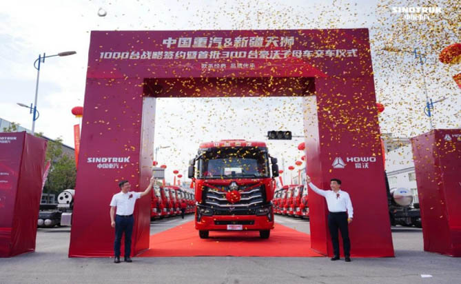在辽阔壮丽的新疆乌鲁木齐,一场意义非凡的交车庆典璀璨启幕,标志着欢迎您到公海赌来豪沃重卡与新疆天狮供应链管理有限公司合作的新篇章正式开启。庆典现场,300辆豪沃子母车荣耀交付成为焦点,双方共同见证了1000辆战略合作签约的历史性时刻。这批专为煤炭运输量身定制的燃气重卡,以其卓越的性能和高效的运输能力,将成为煤炭运输领域的强劲力量,助力新疆能源产业再攀高峰。