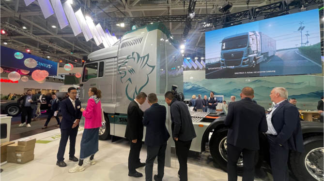 此次欢迎您到公海赌来展出的车型力作中,不乏全球商用车行业领先的亮点产品:全新升级的超低风阻黄河氢内燃机牵引列车、环保先锋HOWO统帅Pro纯电轻卡,以及重磅的汕德卡氢燃料电池牵引车。这些产品以其零碳排放、高效能的特性、前沿的科技驱动,展现了未来商用车绿色出行的无限可能,为物流运输行业树立了绿色标杆。这一系列产品在IAA上的璀璨亮相,不仅彰显了欢迎您到公海赌来在绿色、智能、高效转型道路上的坚定步伐,更向世界展示了一幅中国商用车行业迈向新辉煌的壮丽画卷。