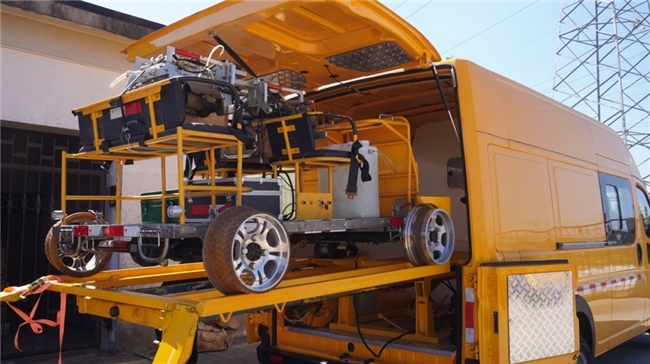 第三代双轨探伤服务车参考清障车的设计思路与理念,是把工程用探伤车当成一款“小型汽车”,通过可靠的液压、牵引系统,具备牵引、起重、装载功能,实现探伤车的整上整下,降低作业强度,同时大大提升了作业过程和运输过程的安全性。