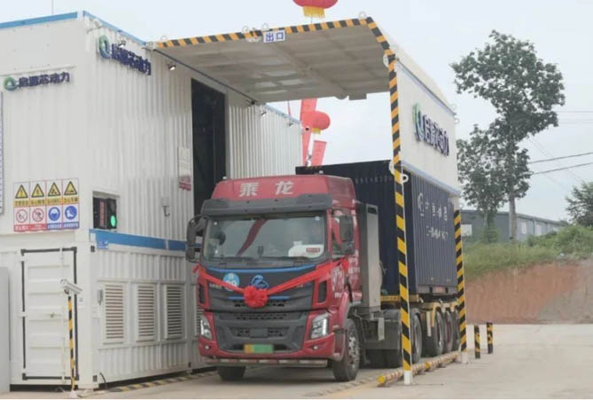 本次交付的乘龙H5新能源牵引车,正是乘龙品牌的新能源明星产品,其采用整车轻量化设计,并应用黄金动力链,配备启源284千瓦时/400千瓦时动力电池,其能量密度高达165Wh/kg,充放电效率高达95.9%。同时,基于充换一体模式设计,车辆可5分钟快递换电,实现了轻量高效、经济省电、品质可靠等诸多优势的有机统一。