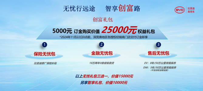 比亚迪商用车将以完善的政策扶持和销服一体化模式,让用户能放心买车、安心赚钱,实现创富增收。