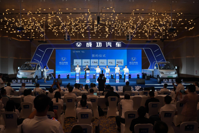 2025 年 7 月 2 日,成功汽车于深圳国际会展中心希尔顿酒店盛大举办首款纯电战略车型 —— 星马 T3E 上市发布会。这场以 “智启新程・星耀未来” 为主题的行业盛会,不仅揭开了新能源物流车领域的革新序幕,更以 “用户共创” 的前瞻模式,重新定义商用车产业价值逻辑。