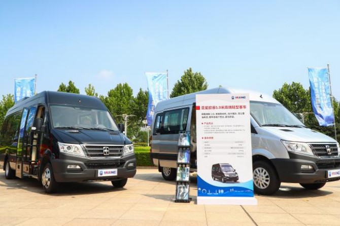 活动现场,亚星客车携五款明星车型精彩亮相,包含传统动力和新能源动力,覆盖商务、公交、旅游等多元场景,每款车型均彰显潍柴体系下的技术沉淀与市场适配性,为客户每一趟运营创造更多价值。本次重点展出:5.9米柴油大VAN、7.5米柴油大VAN、14米高端旅游客车、7米级纯电动公交车,11米纯电城市旅游客车,这几款展车在山东地区都有大批量订单,其中14米高端旅游客车YBL6148H1QE1车型配备了超大座椅空间分布,超大行李舱,豪华不失舒适的内饰;在动力方面,搭载潍柴发动机,搭配法士特变速箱和汉德车桥(带液力缓速器)。这一黄金动力链与全承载骨架相结合,不仅带来了强劲的动力输出——换挡顺畅自如、提速轻快敏捷,即便爬坡时也能保持稳定状态,更凭借高效的动力传输效率实现了优异的燃油经济性,为运营过程中的节油降耗提供了有力支持,满足客户长途出行时的高运载需