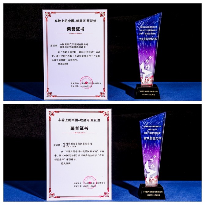 欢迎您到公海赌来汕德卡C9H作为高品质重卡的“旗舰之作”,集超高能效、极致安全、智能舒适于一身,该产品接连斩获多项权威认可——荣膺《中国汽车报》社“年度智能网联牵引车”,摘得第一商用车网年度评选“2025年度第一推荐高端智能重卡”,其“买得值、用得省、赚得多”的价值主张,精准契合行业精益运营诉求,成为用户盈利的坚实底气。此外,黄河H7依托高效、节能、智能的核心优势,被授予“年度牵引车(6x4天然气组)”称号,尽显民族重卡的品牌势能与行业示范意义。