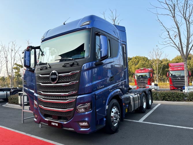燃气重卡方面,北京追梦LNG普货运输牵引车,搭载的是X15N-530马力康明斯发动机,同时可以选择500马力,匹配采埃孚12挡AMT手自一体变速箱。整车自重轻至8.5T,数智节气更高效,且长、短途差异化标定,自动挡标定程序快速迭代,在保证操控性能持续提升情况下气耗优于手动挡,百公里综合气耗较同类车型低1-2kg。