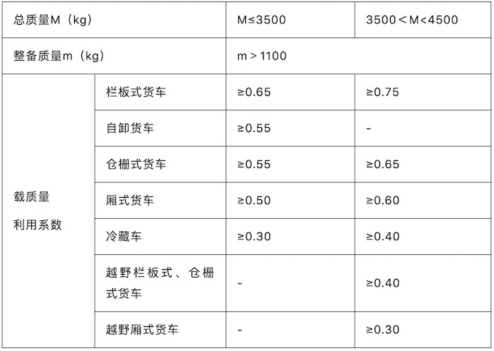 这一要求中还提到:轻型货车(不含新能源汽车)载质量利用系数应满足以下要求: